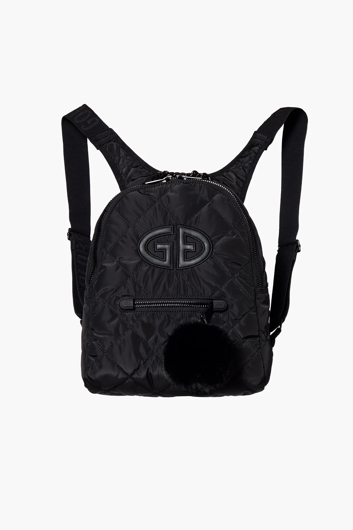 - Faux pompon at front pocket