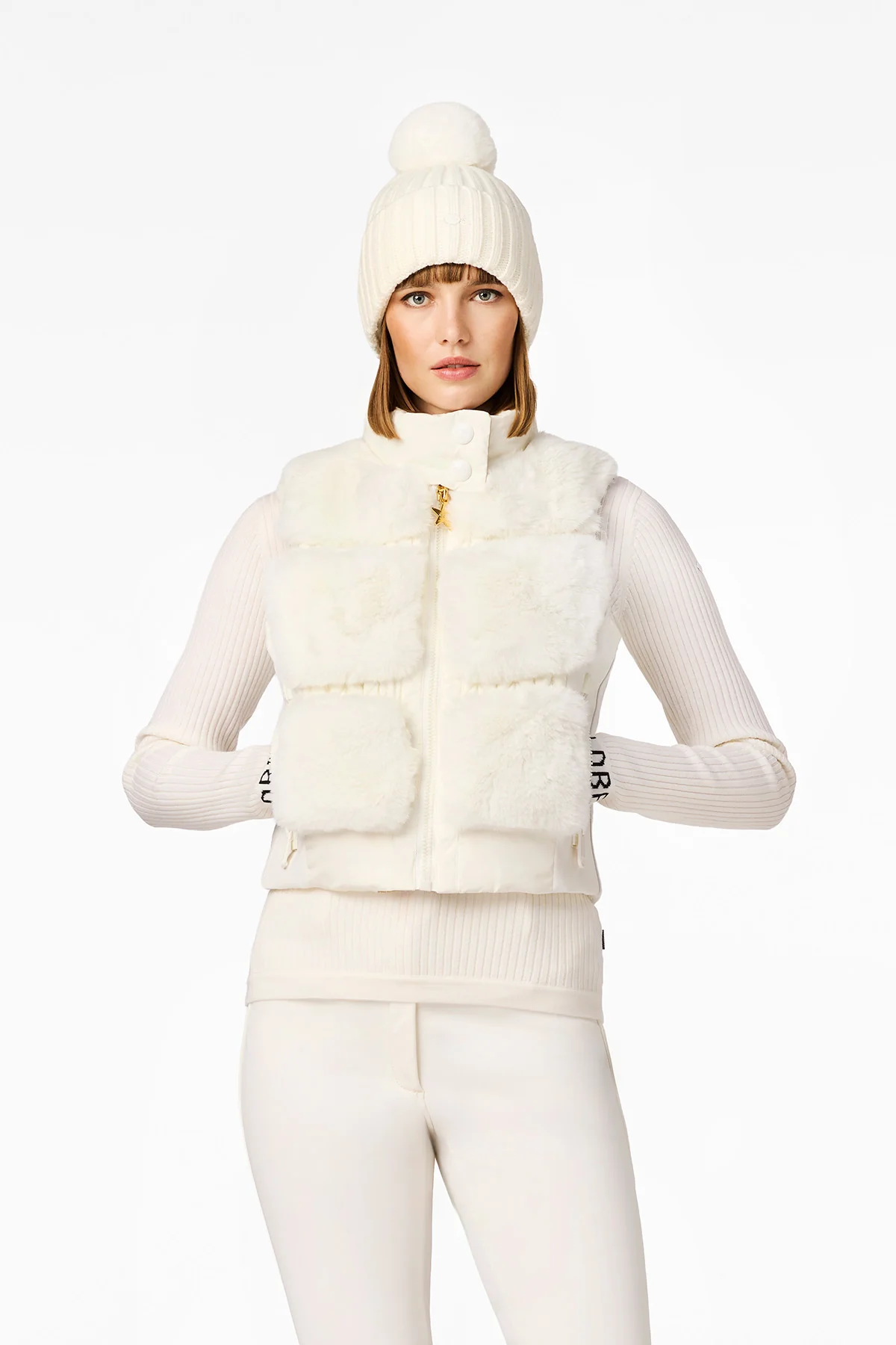 Faux fur bodywarmer with smock details